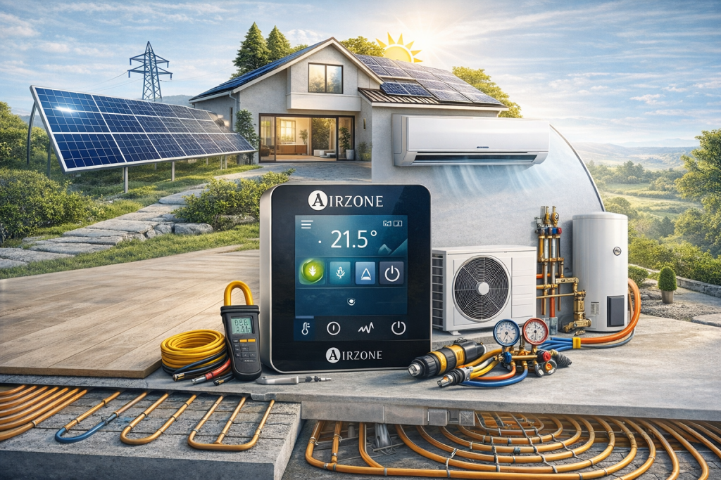 Implementamos aire acondicionado y suelo radiante integrados con domótica para máximo bienestar.